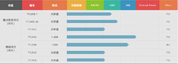 4-1BB(CD137)作为一种T细胞共刺激免疫检查点分子,是TNFRSF中最有希望成药的靶点之一。目前,国内外已有多种4-1BB为靶点的在研产品。FTL001是一款新型作用机制的4-1BB人源化单抗,其结合表位与4-1BBL重合:既可模拟配体以天然方式有效地激活T细胞,又可抑制配体结合产生的过度激活,以达到药效与安全性的平衡。虽然尚无同类产品上市,但其临床价值已得到多方面的初步验证。FTL001作为下一代4-1BB抗体分子将有望为肿瘤免疫治疗开辟一条全新的道路。